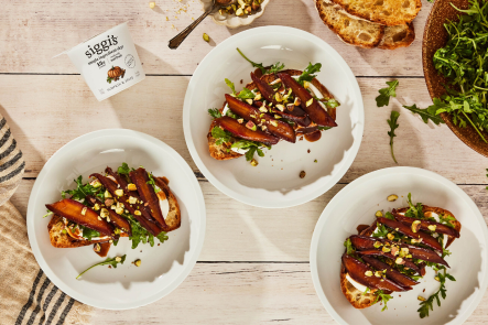 crispy bites • flatbread pizza topped with fresh ingredients and a rich yogurt sauce made with siggi’s yogurt, offering a delicious and crispy meal.